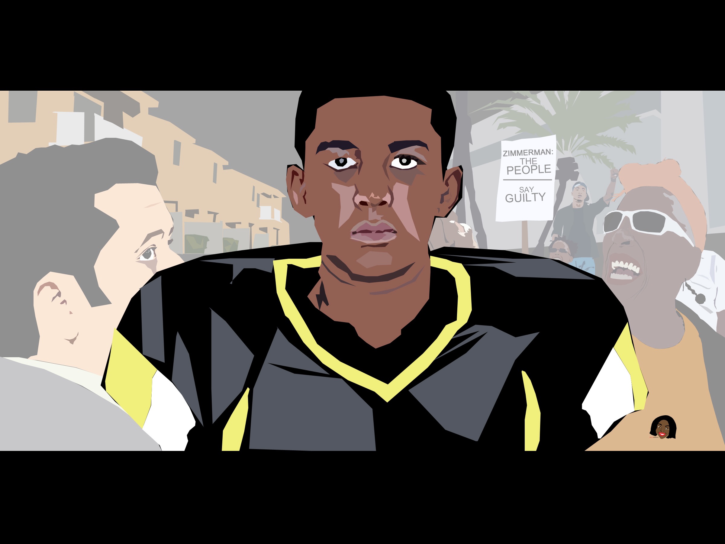 For day #7, I decided to go back to another old project that was started a couple years ago titled, The People Say Guilty. This piece goes along with Hands Up, Don’t Shoot piece that was about the murder of Michael Brown in Ferguson, Missouri. This particular design is about the murder of Sanford, Florida teen Trayvon Martin in February of 2012. This incident is one that I will never forget, I remember everything that was reported during that time period as though it was just yesterday. Following this particular story is where I first found out about the organization, Black Lives Matter, as well. Just like previous designs like this one, I included the many different photographs and images from news sources to create one big portrait of the event. In the background you will find the apartments on the left hand side of the art piece where Martin was killed by the supposedly night watch of the neighborhood Mark Zimmerman on the night of February 26 in 2012. This tragedy made national headlines because Martin was unarmed at the time and posing no threat to anyone around him. He was walking home from the store after purchasing an Arizona canned drink and a pack of skittles candy. Zimmerman followed him through the neighborhood, even after being told by the police to back off of Martin. He then initiated a fight with the 17 year old teen, ultimately shooting and killing Trayvon Martin just minutes from his dad’s apartment in Sanford, Florida. On the left hand side of the design, I have placed an image of Zimmerman looking up at Trayvon in a sneaky way, similar to how he was sneaking around Martin the night of his murder. I wanted his expression to to seem bothered, yet guilty deep down. On the right hand side of the design are protestors, calling for Zimmerman to be prosecuted for a pointless murder.