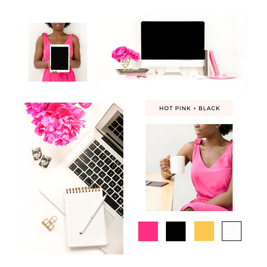 Next up is the HOT PINK + BLACK WORKSPACE collection – we might be mourning the end of peony season, but pink lovers can still enjoy these hot pink peonies throughout the rest of the year. This workspace collection includes a mix of styled desktops, flatlays, tech mockups, and lifestyle images.