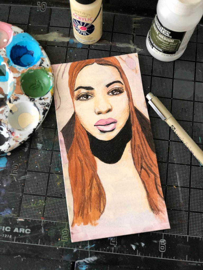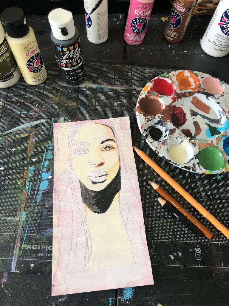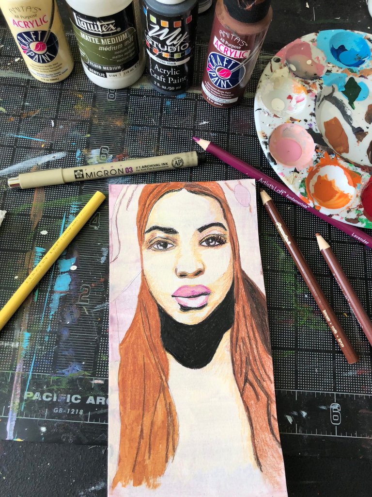 This is an original mixed media painting was created by @K_DougDE with Anitaโs Acrylic Paint, Blick Art Materials Liquitex Matte Medium, Reeveโs Watercolor Gouache Paint and Michaelโs Artist Loft Colored Pencils. There is only one available so it is a first come, first served original art piece that you wonโt be able to find anywhere else. All of our #DEMusicBlocks are either 4ร6 inches in size or 8ร8 inches through our affiliate partner Storenvy. This particular one is 6ร4 inches in size.