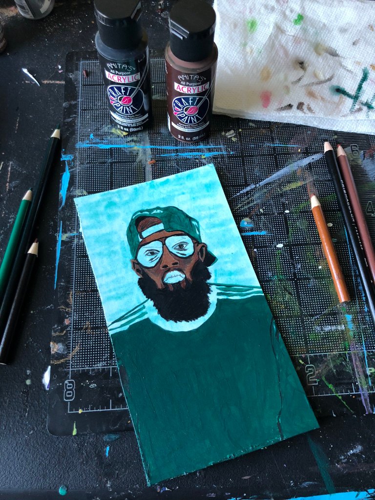This is an original mixed media painting that was created byย @K_DougDEย withย Anitaโs Acrylic Paint,ย Blick Art Materials Liquitex Matte Medium,ย Reeveโs Watercolor Gouache Paint,ย Michaels Artist Loft Colored Pencils,ย Prismacolor Colored Pencils,ย Crayola Colored Pencils,ย Staedtler Mars Drawing Pencilsย andย Micro Pens. There is only one available so it is a first come, first served original art piece that you wonโt be able to find anywhere else. All of ourย #DEMusicBlocksย are either 4ร6 inches in size or 8ร8 inches through ourย affiliateย partnerย Storenvy.ย
