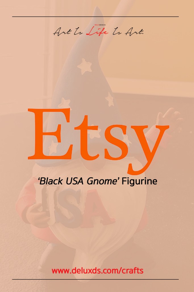 This handmade Black USA Gnome Figurine is a hand painted by Visual Artist Keara Douglas with Acrylic Paint. A great decoration option for the Independence Day, Memorial Day or 4th of July holiday seasons.