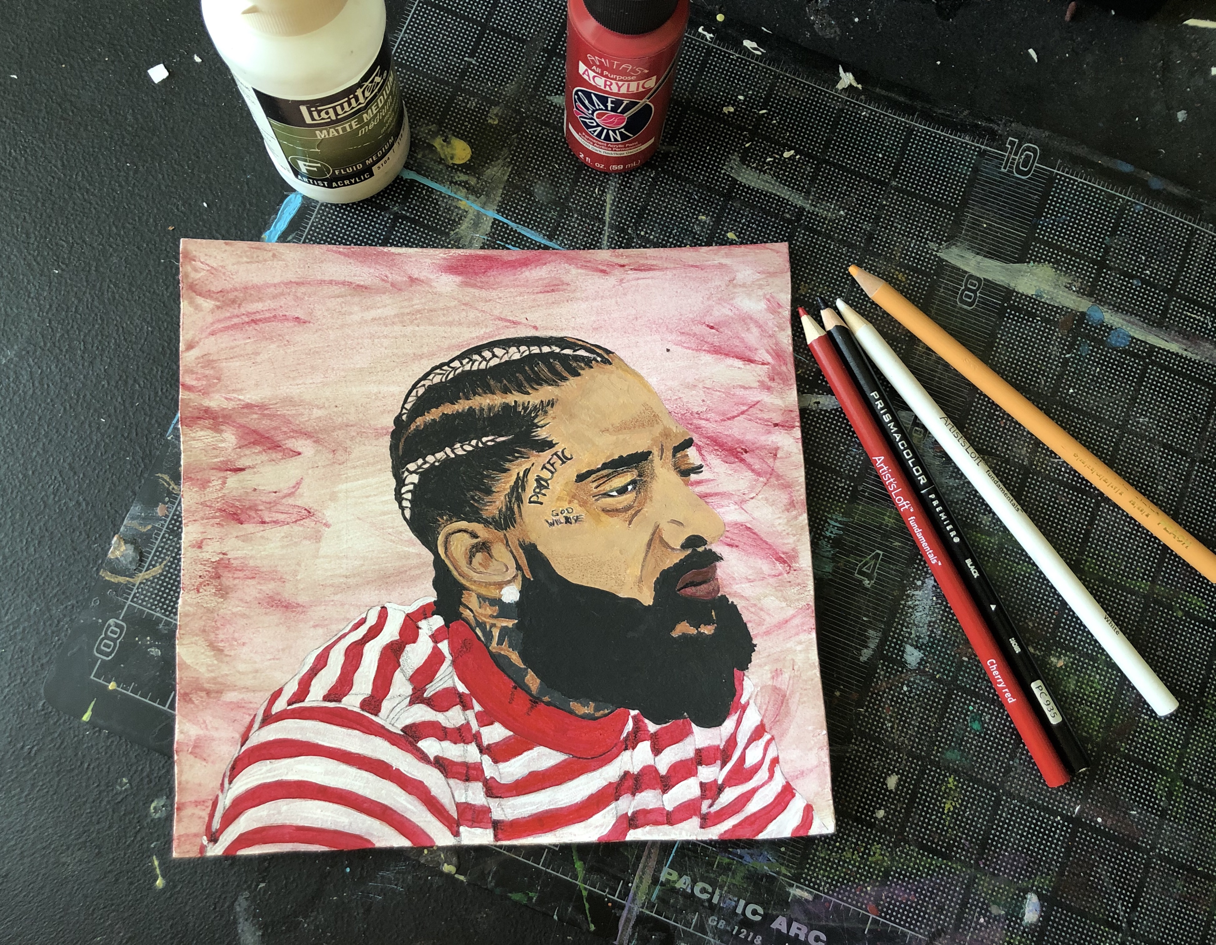 This is an original mixed media painting that was created byย @K_DougDEย withย Anitaโs Acrylic Paint,ย Blick Art Materials Liquitex Matte Medium,ย Reeveโs Watercolor Gouache Paint,ย Michaels Artist Loft Colored Pencils,ย Prismacolor Colored Pencils,ย Crayola Colored Pencils,ย Staedtler Mars Drawing Pencilsย andย Micro Pens. There is only one available so it is a first come, first served original art piece that you wonโt be able to find anywhere else. All of ourย #DEMusicBlocksย are either 4ร6 inches in size or 8ร8 inches through ourย affiliateย partnerย Storenvy.