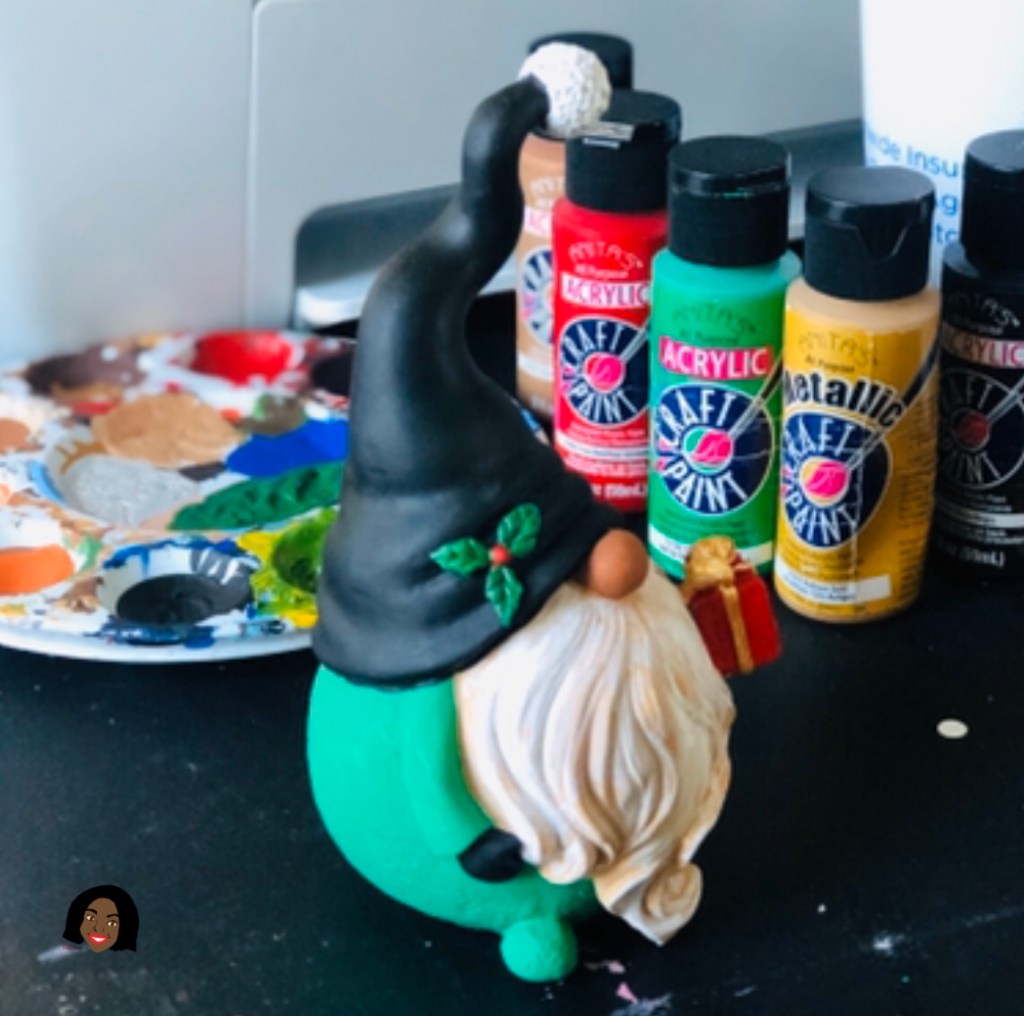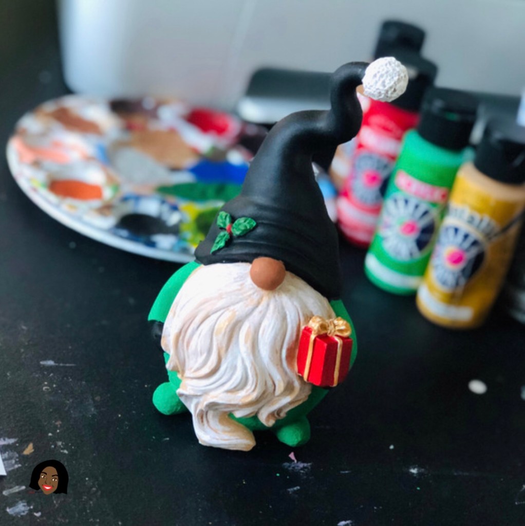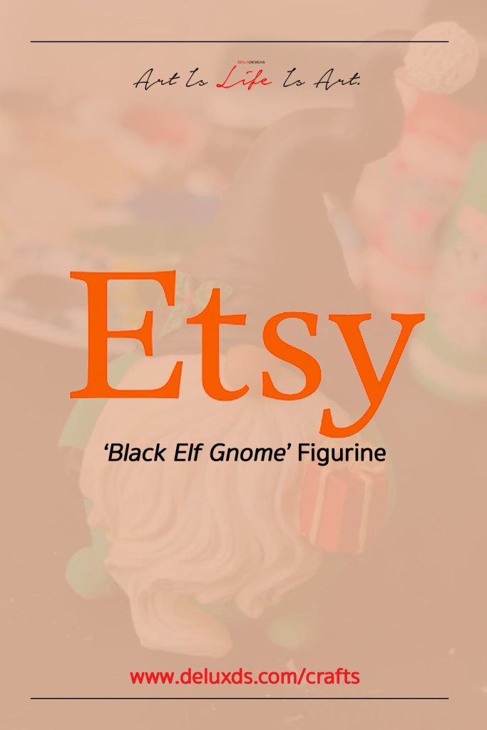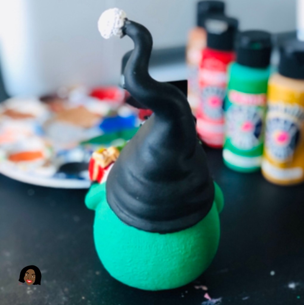 This handmade Black Elf Gnome Figurine is a hand painted by Visual Artist Keara Douglas with Acrylic Paint.