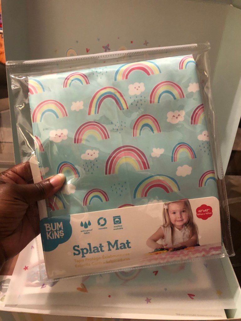 The Splat Mat was perfect for our outdoor setting in an effort to minimize any paint messes for the grass or sand so we could stay environmentally friendly. It gave my toddler a place to sit during our beach visits as well which was perfect. This can also be used as a protective barrier on the floor under high chairs when your baby is learning how to self feed themselves but be careful that it doesn’t slide while under the high chairs. Safety first is a priority when it comes to placing any objects around high chairs for babies.
