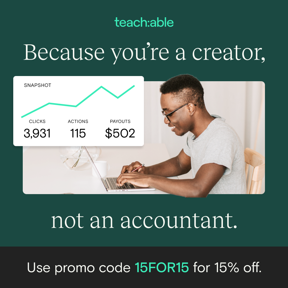 This Tax Day, Delux Designs (DE), LLC’s affiliate partner Teachable is giving us something to celebrate with 15% off all of their plans. Teachable’s automated tax handling lets creators focus on the important things like building their course, connecting their community or growing their influence while Teachable takes care of the less fun part of running your business (remitting U.S. sales tax anyone?). With teachable:pay, not only will Teachable save you from next year’s tax headache, but you also get the following: