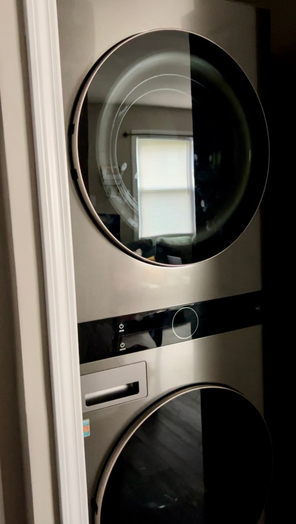 This was the second item I purchased from Wayfair during my latest move into our new home and I’m obsessed! I absolutely love this new LG Single Unit Front Load WashTower. At first I was going to go the route of purchasing a washer and a seperate dryer and then just stack them on top of each other but the space in which I needed them to fit in would not work for that type of set up I have currently. Each one I wanted were all too wide or ended up being very difficult to stack in such a narrow space. So I found the LG Single Unit Front Load WashTower and fell in love with it. So far I have just used it for basic washing and drying loads, but this is a Smart Appliance so there are some capabilities that I have not unlocked yet in which I can use my phone to control. I thought I would have to do really small loads but overall I have not had an issue with load sizes. Everything fits perfectly, including my bed comforters and blankets, the more bulky items. Another great feature are the lights that are included inside the washer and dryer drum itself. At night this has come in so handy. I don’t have to add a light to my wash closet or outside of it because the WashTower itself has a light. I love it.
