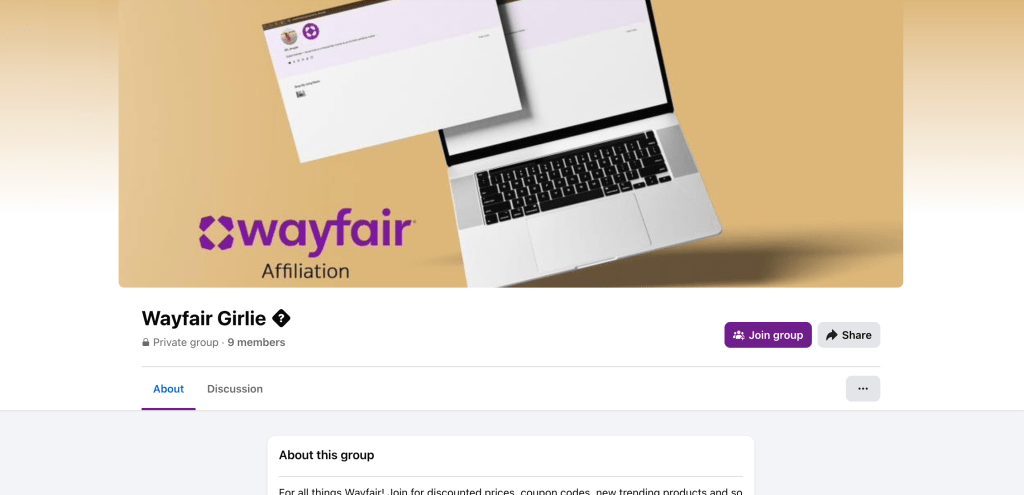 Join the Wayfair Girlie Facebook Group for one on one discussions and much more regarding our affiliate partner Wayfair by clicking the image shown above.