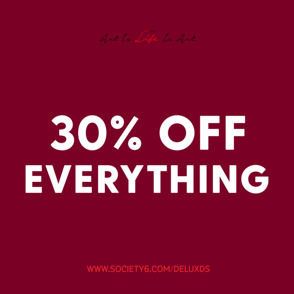 Enjoy 30% off Everything in Delux Designs (DE), LLC affiliate partner Society6 Shop until Tuesday, October 22, 2019!