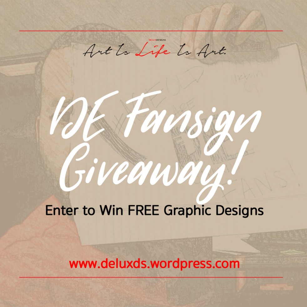 Hello everyone! We have begun our very first giveaway ever here at DE! It is pretty simple, yet a fun and creative way to show your support for Delux Designs (DE), LLC, all while obtaining some FREE graphic design services for your business! Our new challenge is called DE Fansign Giveaway. This is a giveaway…… Continue reading DE Fansign Giveaway!