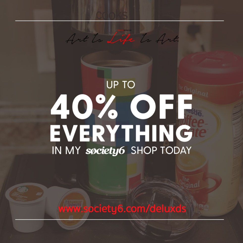 Enjoy 40% off everything in Delux Designs (DE), LLC’s Society6 Storefront until Tuesday March 26, 2019!