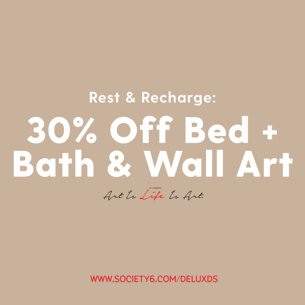 Enjoy 30% off select items in Delux Designs (DE), LLC Society6 Storefront for the Rest and Recharge Sale!