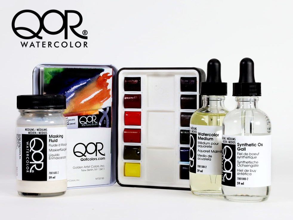 Enter to win QoR mini watercolor palette, watercolor medium, synthetic Ox Gall and masking fluid with Doodlewash.